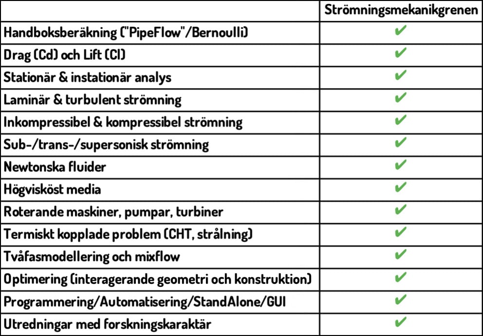 Självfallet åtar vi oss enklare analyser och studier men huvudfokus ligger på numerisk CFD-baserad analys. Våra uppdrag handlar inte bara om att simulera fram färgglada flödesfält utan kopplar alltid till en gedigen utredning med fenomenologisk inledande diskussion och analys samt oftast även förslag på konstruktionsförbättringar baserat på framtagna resultat!